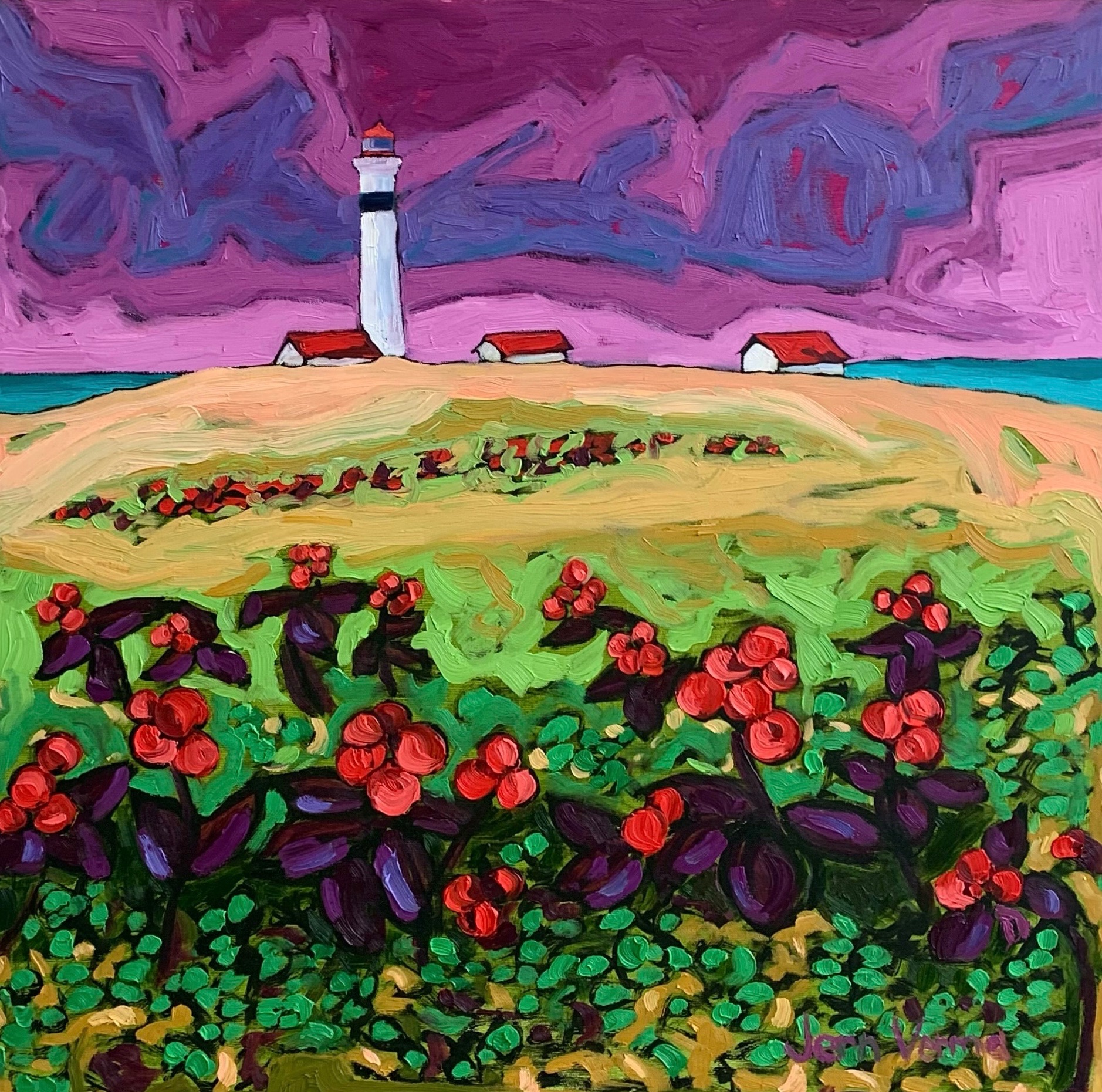 In September 2021, the artist set up her oil paints beneath the tower in the gallery space where the collection is featured. At that time, the 2022 art exhibit was not on her mind, but inspired by Lucy, the lighthouse and Labrador too, the artist’s visible brushstrokes, distinct on the canvas, became one landscape, then another and another.